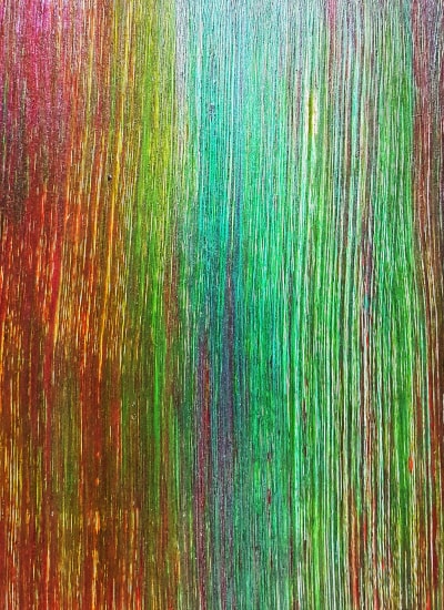 For these paintings, I used a wallpaper pasting brush with plastic bristles to pull those long lines through the acrylic paint. I let the paint part-dry before dragging the brush across, which created those distinct marks.